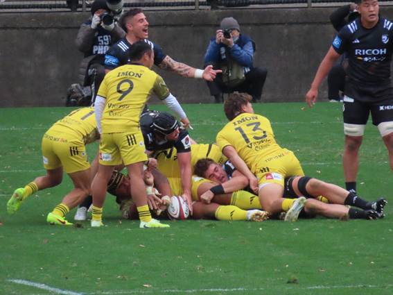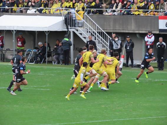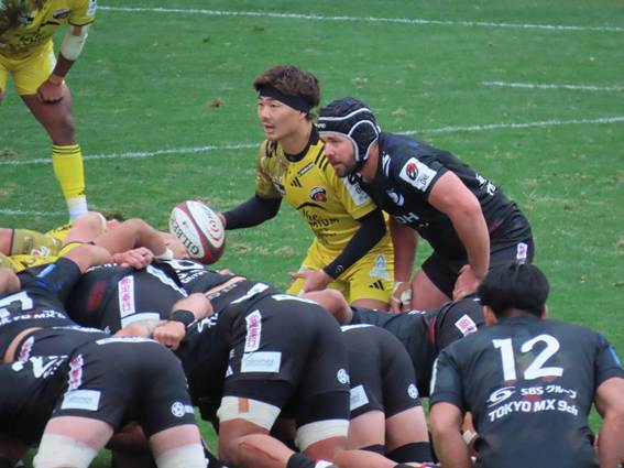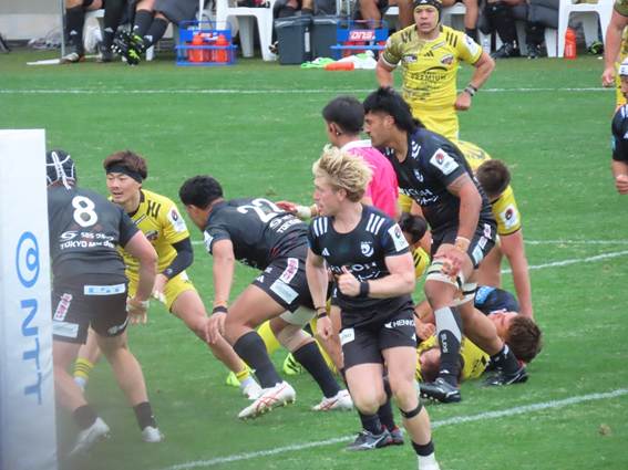 Black Rams’ new signing, CTB SWARD, broke straight through from the first attack following a scrum near the center of the field and scored a try right under the goalposts. This player, despite this being his first professional contract with the Black Rams, was selected as a starter for the opening match. His ability to break through the line and score a try shows he is no ordinary rookie. He will be a player to watch going forward.