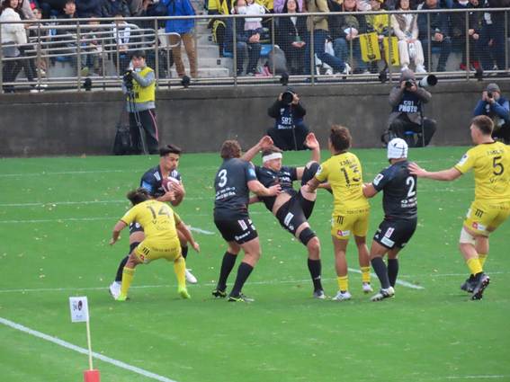 In response, the Black Rams defense countered with intense individual contact. However, as Sungoliath approached the try line in the opposition’s territory, they combined sustained attacks with a wide move from left to right, creating numerical advantage. Ultimately, WTB OZAKI scored a try in the right corner of the opposition’s in-goal area.