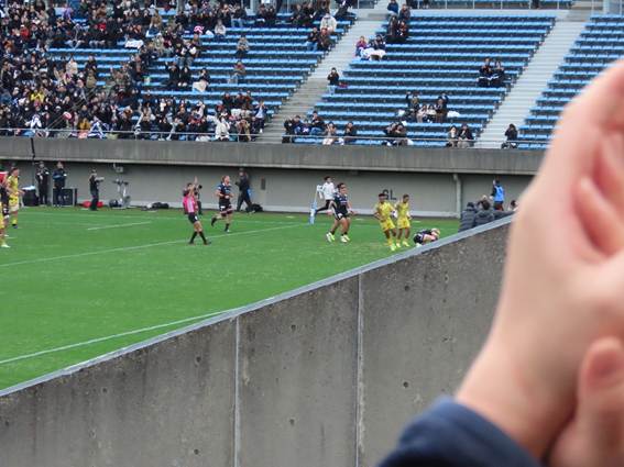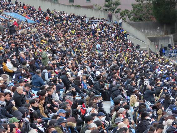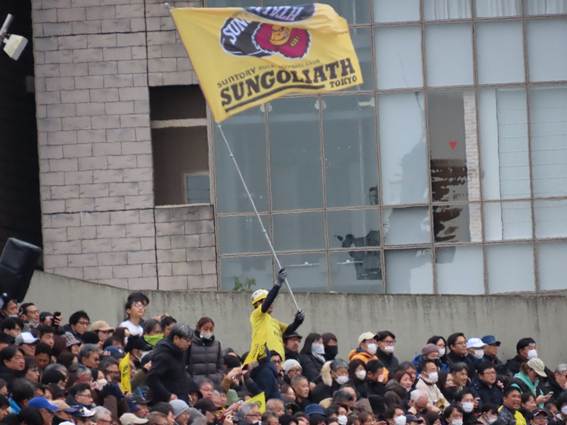 The kickoff time for this day’s match was 1:00 PM. The temperature was around 11 degrees Celsius. A basic tip for watching games in winter is to secure a seat in the sun—it’s key to enjoying a long match.