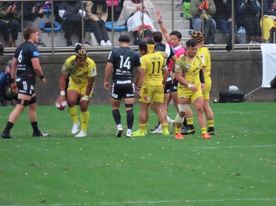 However, the 2-man disadvantage left the Black Rams stretched thin against Sungoliath’s expansive play, leading to a try in the right corner of the in-goal area. The try was scored by substitute CTB NAKAMURA.