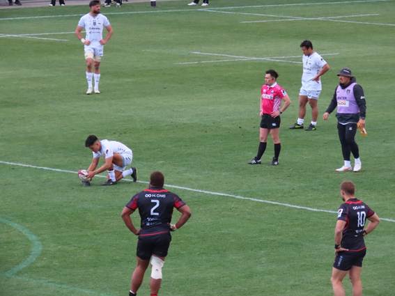 After the restart, HONDA Heat entered the opposition’s territory and maintained possession. Several opportunities arose where a penalty goal would have been a likely scoring option following opposition fouls. However, HONDA Heat chose to kick for goal instead, persistently aiming for tries. Possible reasons included their dominance in the forward battle and the fact that SO KELLERMAN had missed consecutive conversion goals that day.