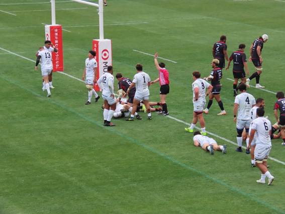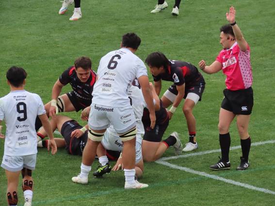 However, HONDA Heat’s LO NISHIMURA broke through the defense and scored a try just left of the goalposts in the opponent’s end zone.