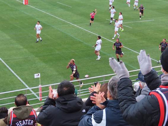 The conversion kick after the try was missed, but the score became 32-16. At this point, HONDA Heat scored 2 consecutive tries in quick succession, seizing control of the match.