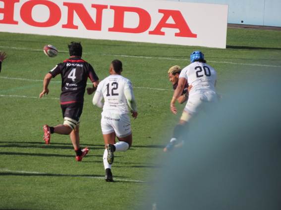 HONDA Heat kicked the restart kickoff outside. D-Rocks secured the ball from a lineout on the left side and moved it to the right, but a slightly errant pass was intercepted by HONDA Heat’s FB REMEKI.