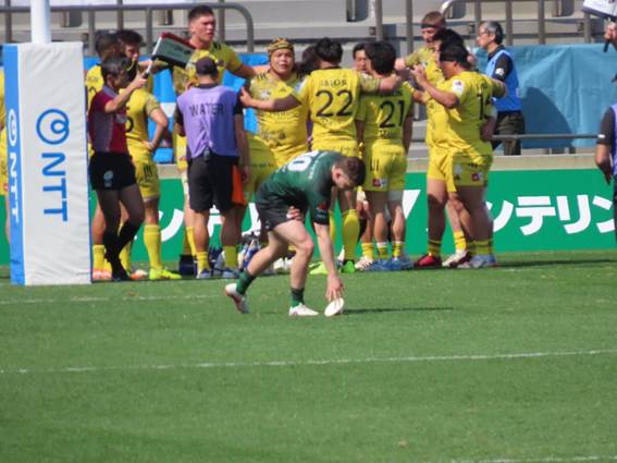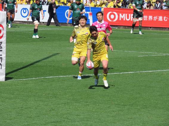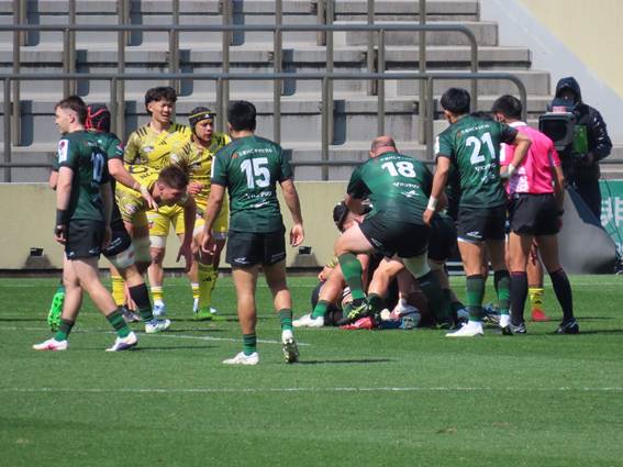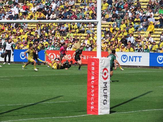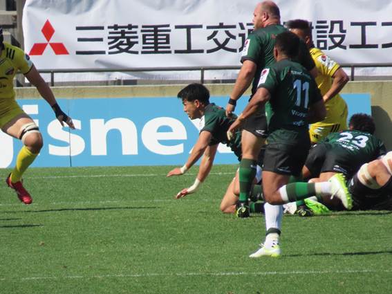 However, HONDA Heat’s LO NISHIMURA broke through the defense and scored a try just left of the goalposts in the opponent’s end zone.