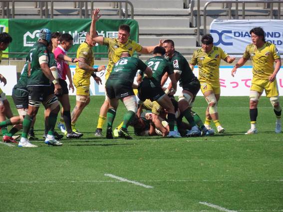 Then, near the left side 22-meter line, Honda Heat formed a maul from their own lineout and advanced, threatening the try line. The maul collapsed, and Honda Heat attempted a try through a forward drive, but D-Rocks’ defense held firm, preventing the try.