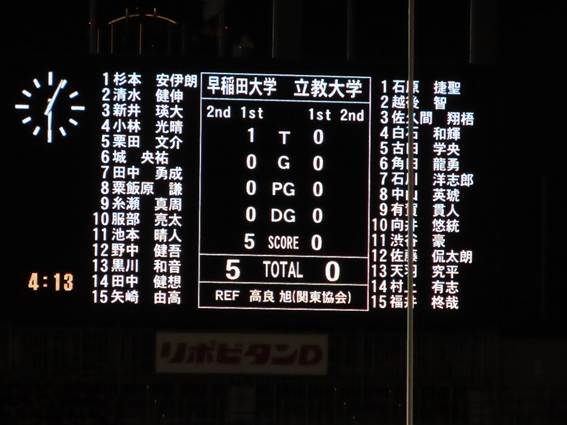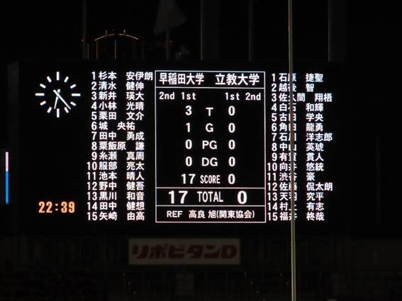 Typically, this match often ends as a one-sided game dominated by Waseda University, with the audience estimated to consist mostly of students and alumni from both universities. The attendance that day was 5,337 people.