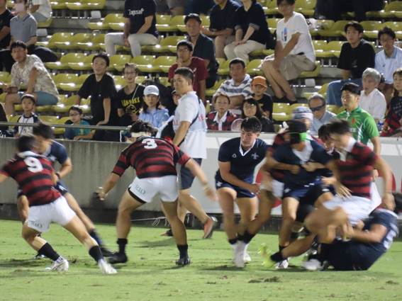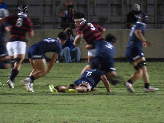 Though trailing by a wide margin, Rikkyo University finally penetrated deep into the opposition’s territory during this period. Their forwards and backs worked cohesively to sustain the attack. This marked a significant improvement for Rikkyo compared to last year, as they created periods where they could hold their own against top-tier teams at the point of contact.