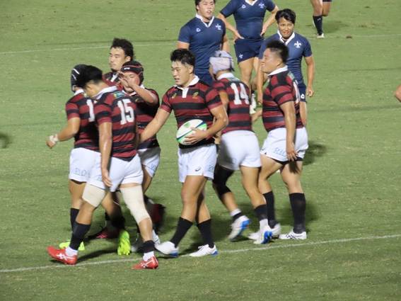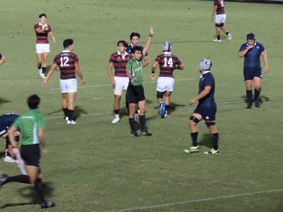 Waseda University regained possession in a scrum near the try line and SO HATTORI kicked the ball back into the opposition’s territory.