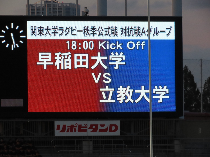 The sweltering summer has finally bid farewell, and with autumn’s arrival, official rugby matches have commenced across Japan. The first match I attended this season was a rare night game for university rugby. It was an official Kanto University Rugby Rivalry Group match, featuring Waseda University (last season’s 1st place) VS Rikkyo University (last season’s 7th place).